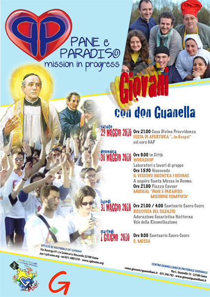 Dopo l’esperienza del 2002 è in cantiere a Como, un mega raduno giovanile che vedrà insieme giovani guanelliani provenienti da varie parti d’Italia con qualche rappresentanza europea e i giovani della diocesi comasca. Il meeting si terrà dal 29 maggio al 1° giugno. “Vuole essere un grande evento che offre sì l’opportunità di divertirci e ritrovarci all’insegna della riflessione e della festa, ma soprattutto di incontro tra giovani e con Lui. Lo stesso nome "Meeting" ci dice che non sarà uno stare insieme in un modo qualunque ma che vuole essere un triplice incontro: tra giovani, con don Guanella, …con il Signore. In primo luogo un incontro tra giovani per scoprire come le distanze geografiche non tengano poi così lontani i cammini dei giovani del terzo millennio. Le esperienze di altri eventi ad ampio respiro (GMG mondiali, Meeting M2G nazionali, 2GG diocesana) ce l’hanno fatto vivere in prima persona e hanno sicuramente lasciato nei giovani la voglia di ritrovarsi per rinsaldare amicizie, fino a intuire che i vari cammini sono legati da un filo invisibile ma tenace che si chiama Provvidenza. Possiamo scoprire che abbiamo ricevuto un patrimonio comune (che è la spiritualità vissuta da don Luigi Guanella, presto Santo) nato in questa diocesi comense e vissuto in molte delle diverse realtà che rappresentiamo. La grande convocazione che vivremo sarà dunque con la figura, la spiritualità e il Carisma di questo eroe della Carità, per riscoprire la forza e l’attualità del suo messaggio; potrà, inoltre, essere un inizio del cammino di preparazione al grande giorno tanto atteso della santificazione. Tutto ciò lo faremo non con grandi conferenze... . Vogliamo veramente che al centro del nostro Meeting ci siano i giovani, con le loro esperienze, con la testimonianza concreta delle loro aspirazioni, delusioni, speranze e gioie. E partendo dal concreto della loro vita, vogliamo arrivare al terzo e più importante incontro, quello con il Signore della vita, per riscoprirlo sempre vigile e attivo nel condurci nel nostro cammino.” |