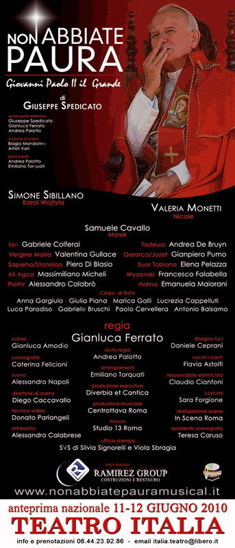 GMG 2011 » Mediacenter » Archivio Newsletter » Newsletter n.16 » MUSICAL NON ABBIATE PAURA SU PAPA GIOVANNI PAOLO II