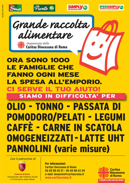 GMG 2011 » Mediacenter » Archivio Newsletter » Newsletter n.16 » CARITAS ROMA RACCOLTA ALIMENTARE A FAVORE EMPORIO SOLIDARIETA