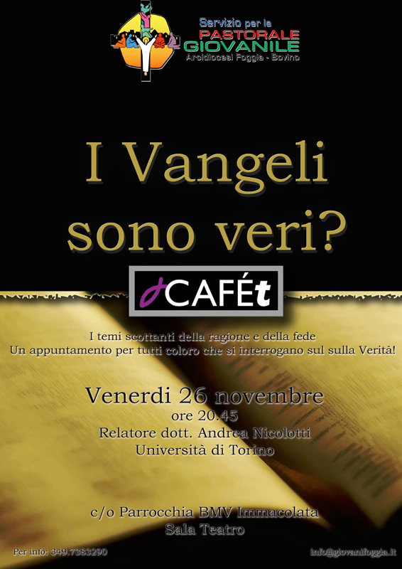 GMG 2011 » Mediacenter » Archivio Newsletter » Newsletter n.34 » FOGGIA CAFE TEOLOGICO I VANGELI SONO VERI
