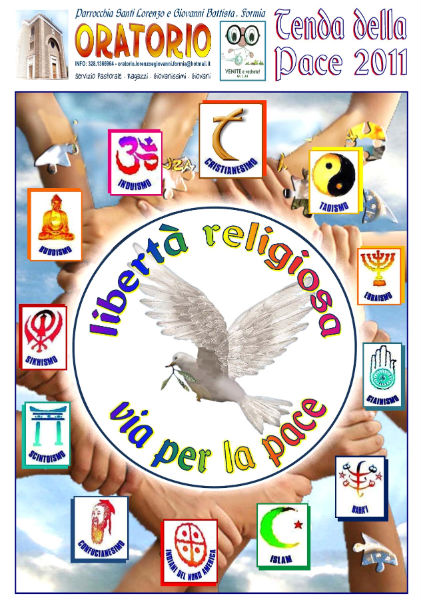 Si terrà nei giorni 21-23 gennaio la Tenda della Pace: libertà religiosa, via per la pace presso l’oratorio “Venite e Vedrete” della Parrocchia Santi Lorenzo e Giovanni Battista di Formia organizzato dal Servizio pastorale ragazzi, giovani e giovanissimi. Per informazioni, visita il sito http://www.lorenzoegiovannibattistaformia.com/oratorio/ |
